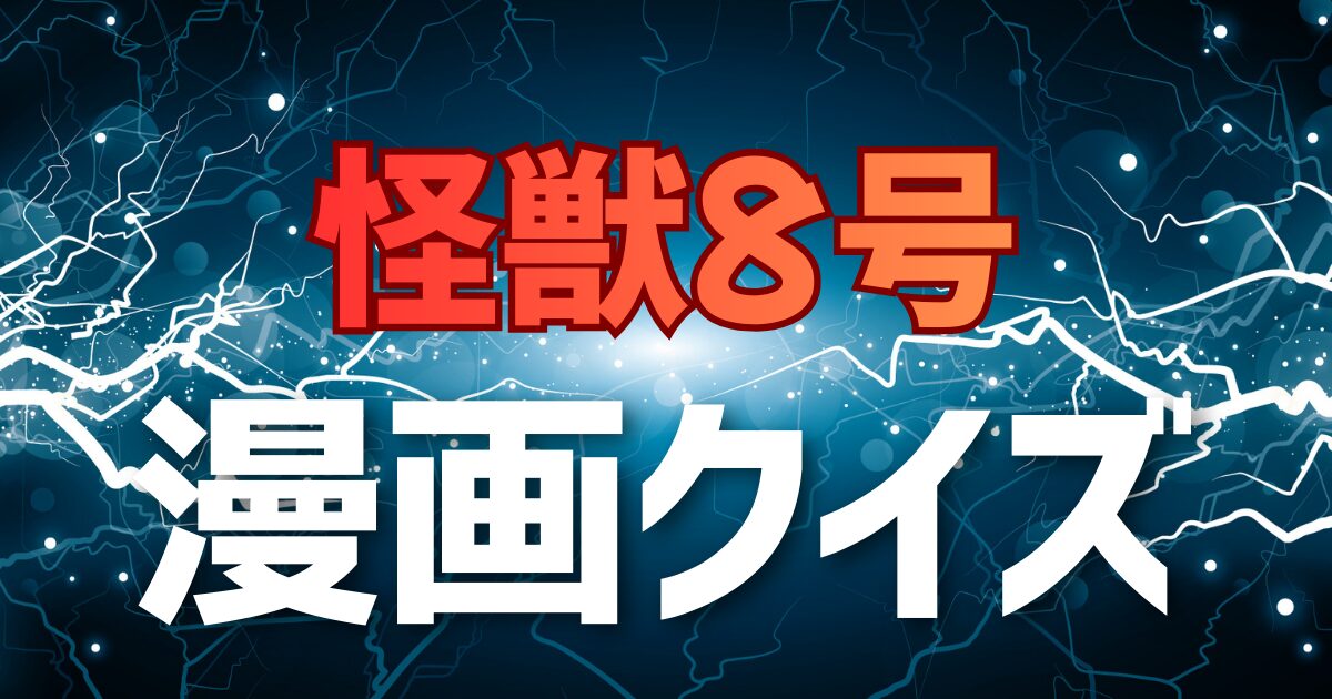 『怪獣8号』クイズ全16問 第1問 Q:主人公の名前は? 【ヒント(3択)】 A.日比野アフカB.日比野マフカC.日比野カフカ 【答えを見る】 日比野カフカ 第2問 Q:主人公が所属していた怪獣専門業者の社名は? 【ヒント(3択)】 A.モンスタークリーニングB.モンスタースイーパーC.モンスターイーグル 【答えを見る】 モンスタースイーパー 第3問 Q:防衛隊第3部隊の隊長の名前は? 【ヒント(3択)】 A.亜白ミナB.亜白カナC.亜白マナ 【答えを見る】 亜白ミナ 第4問 Q:清掃業務時代から主人公の ...