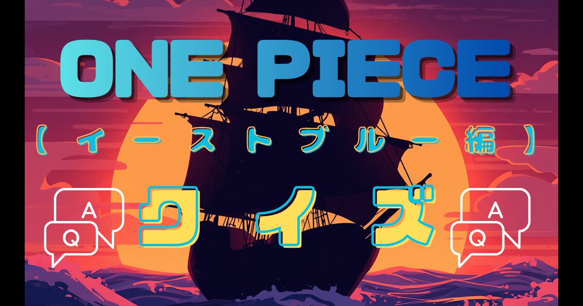 『ワンピース』“イーストブルー編”クイズ全41問 第1問 Q:「大海賊時代」のきっかけとなった海賊王の名前は? 【答えを見る】 ゴール・D・ロジャー 第2問 Q:ルフィが大事にしている麦わら帽子は、誰から預かったもの? 【答えを見る】 シャンクス 第3問 Q:赤いハートマークの海賊旗は、なに海賊団の船? 【答えを見る】 アルビダ 第4問 Q:赤いハートマークの海賊船で働かされていた、海軍に憧れている悲運な少年の名前は? 【答えを見る】 コビー 第5問 Q:食べた人に特殊な能力を与える食べ物の総称は? 【答 ...